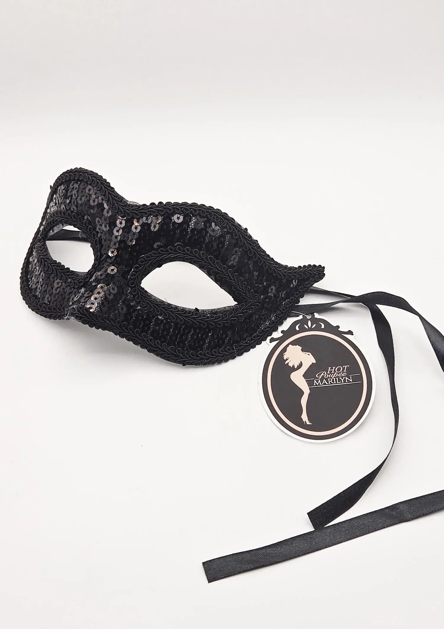 Czarna cekinowa maska na oczy to stylowy dodatek, który nada każdej stylizacji nutę tajemniczości i klasy. Klasyczny kształt ozdobiony błyszczącymi cekinami subtelnie odbija światło, tworząc zmysłowy efekt. Maska wykończona czarną lamówką i wiązana satynowymi tasiemkami doskonale dopasowuje się do twarzy, zapewniając komfort i elegancki wygląd przez cały wieczór.