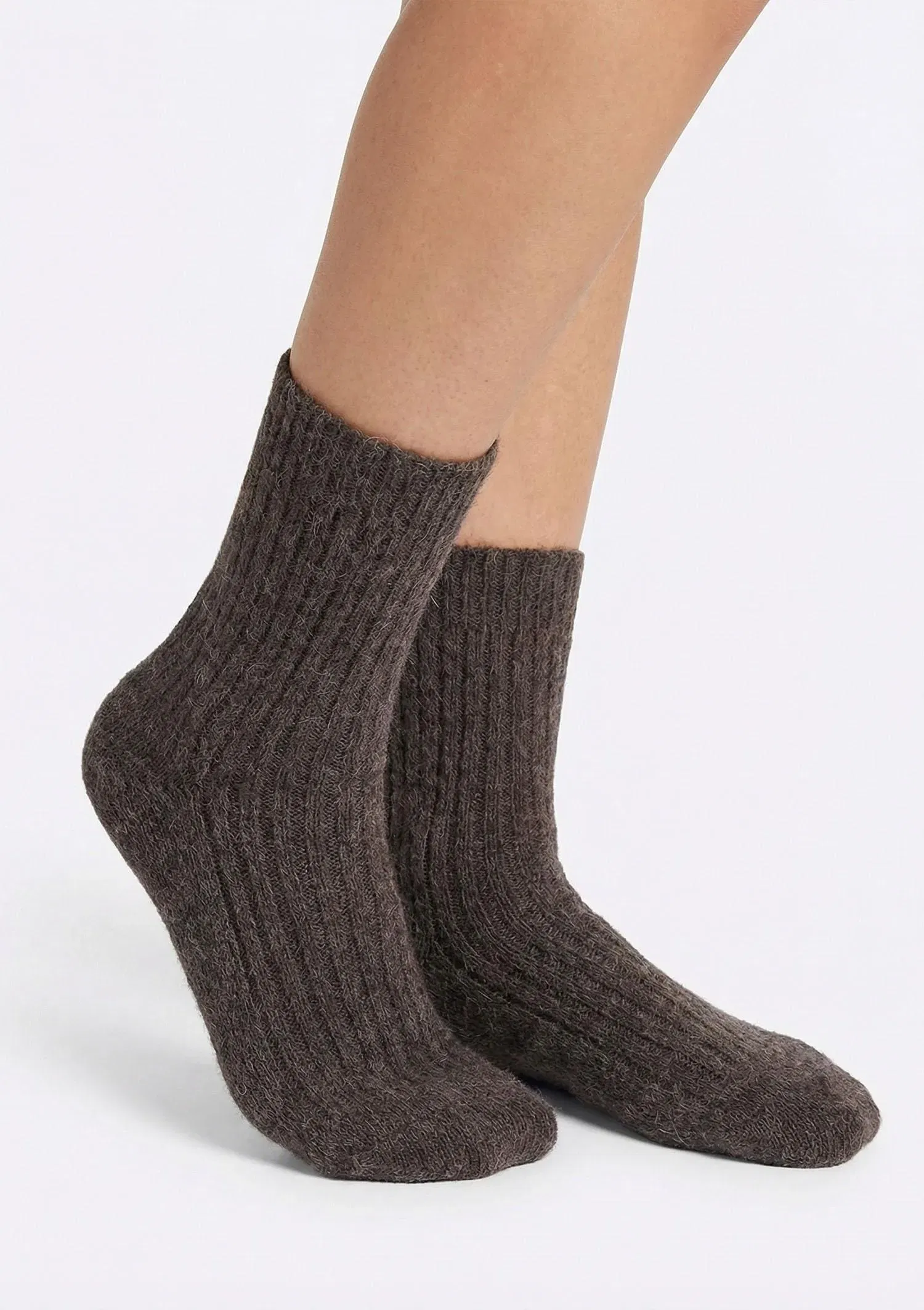 Ciepłe skarpetki damskie prążkowane z naturalnej bawełny - Angora F28
