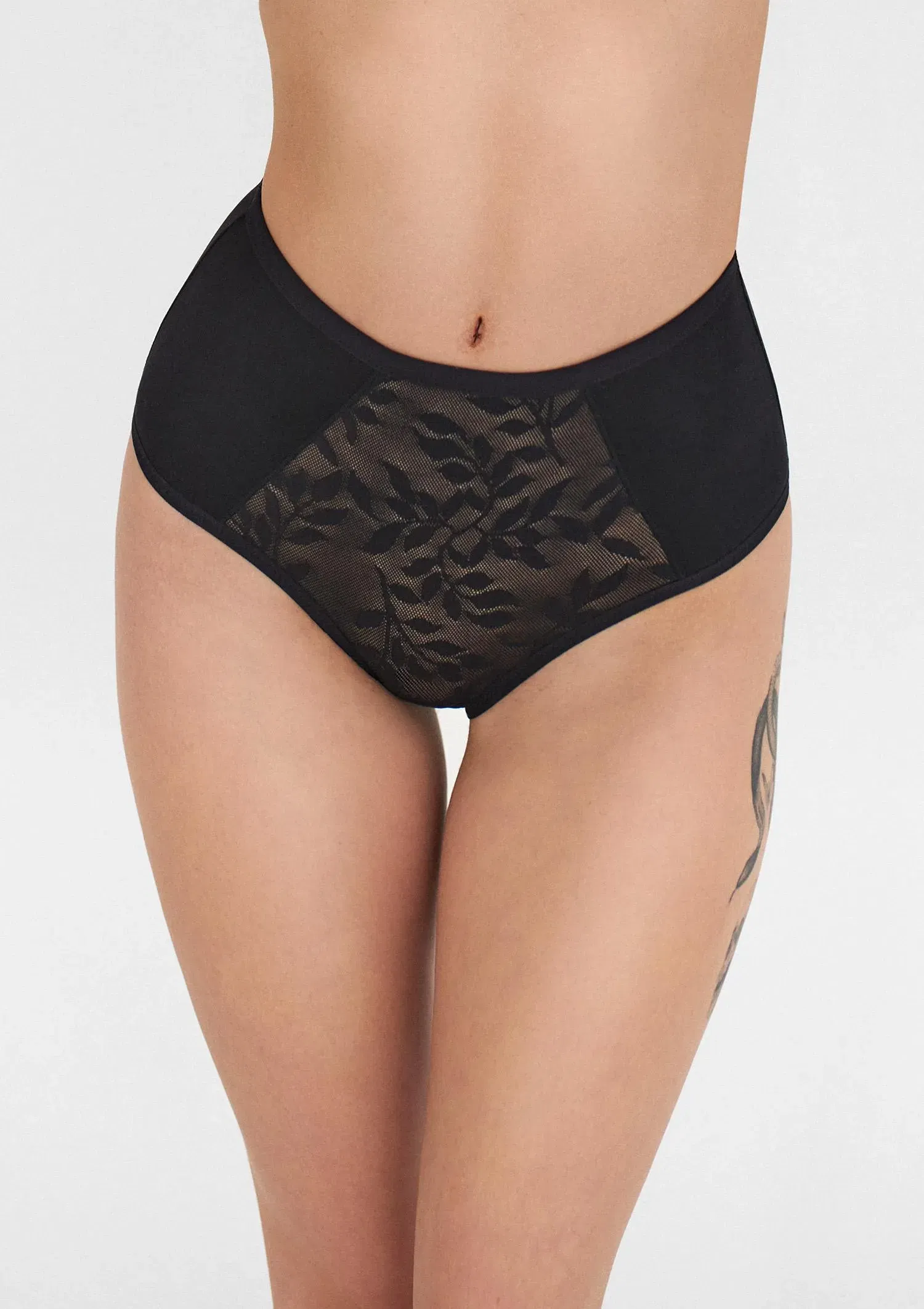 Tina - klasyczne, pełne figi. Front uszyty jest z żakardowego plenu oraz mikrofibry. Szwy są płaskie dla większego komfortu. Lamówki wykańczają talię i pachwiny.