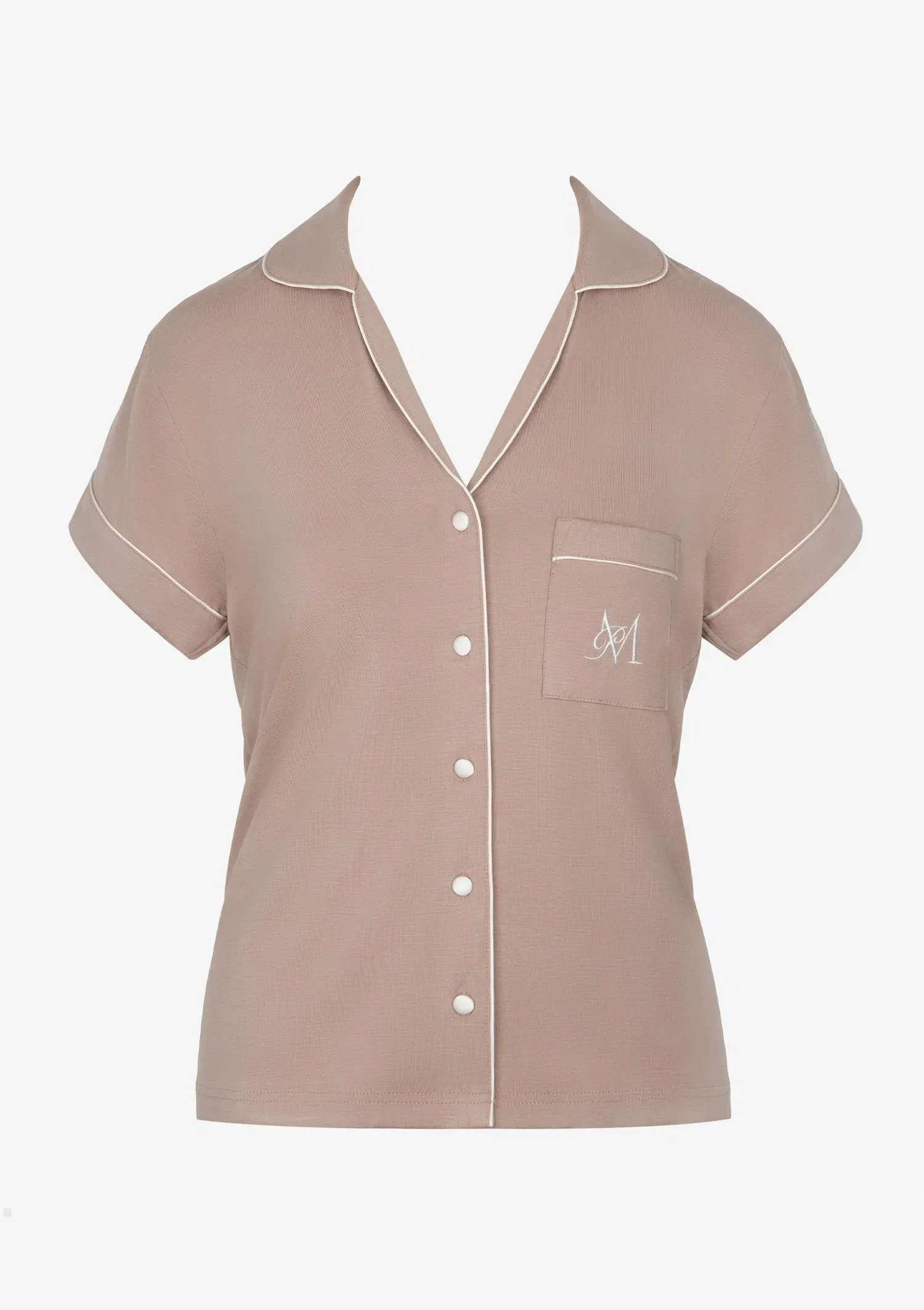 Koszulka piżamowa z krótkim rękawem Hannah łączy klasyczny wygląd z wyjątkowym komfortem, idealnym na wieczorny relaks i spokojny sen. Wykonana z wysokogatunkowego modalu, znanego z niezwykłej miękkości i przewiewności, delikatnie otula skórę i utrzymuje przyjemne uczucie świeżości przez całą noc. Klasyczny krój z kołnierzykiem i kremowymi lamówkami nadaje ponadczasowego charakteru, a luźny fason zapewnia swobodę ruchów. Zapięcie na guziki i kieszonka na piersi dodają praktycznego wykończenia. Modal, pozyskiwany z włókien celulozowych, jest przyjazny dla skóry, nie powoduje podrażnień i znakomicie sprawdza się w codziennym użytkowaniu.