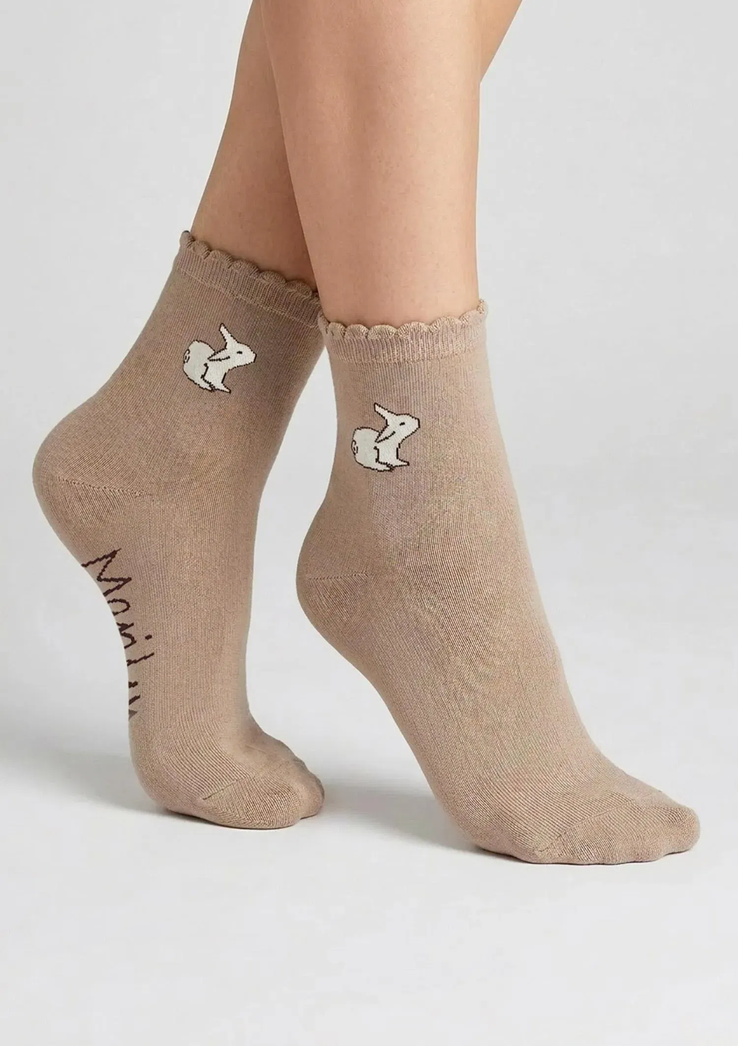 Skarpetki damskie bawełniane z wyszytym zajączkiem kawowy - SCP Bunny