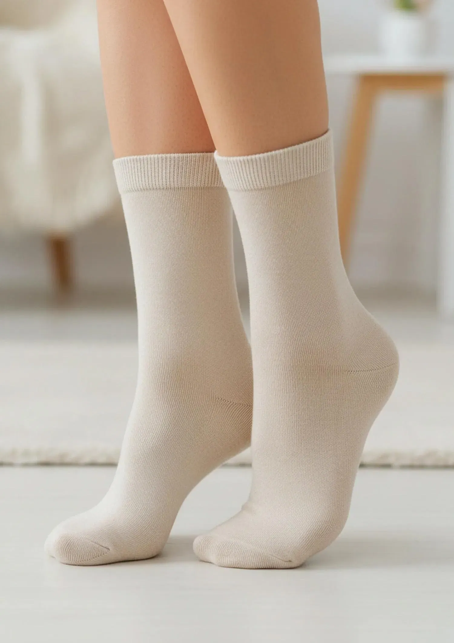 Miękka kaszmirowa przędza otula stopy przyjemnym ciepłem, tworząc lekką warstwę, która dopasowuje się do ruchów bez uczucia obciążenia. Gładka dzianina pozostaje przyjemna dla skóry nawet przy długim noszeniu, a elastyczny ściągacz delikatnie podtrzymuje skarpetkę na miejscu. Dzięki jednolitej strukturze idealnie układają się w obuwiu, zapewniając komfort zarówno w ciągu dnia, jak i podczas domowego relaksu.