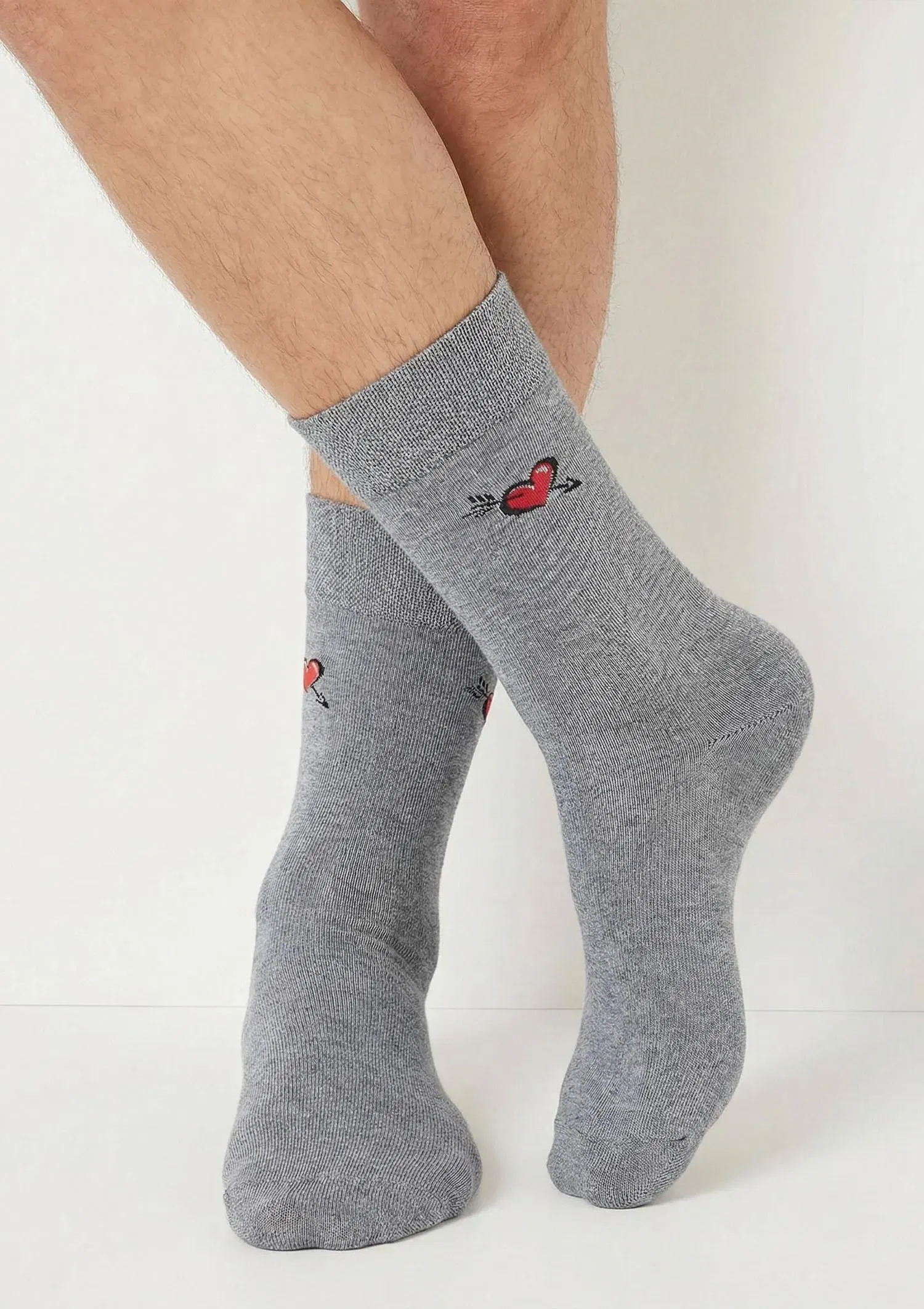 Klasyczne skarpety męskie z małą grafiką. Wykonane z naturalnej bawełny najwyższej jakości. Płaski i miękki szew zapewni komfort noszenia.